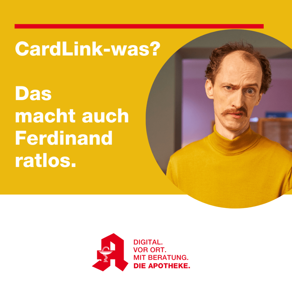 Wahrscheinlich hast du ähnlich viele Fragezeichen dazu im Kopf wie Ferdinand … Mit dem CardLink-Verfahren kannst du deine E-Rezepte an Apotheken oder Versandhändler weiterleiten, indem du deine Versichertenkarte an dein Smartphone hältst. Eine App übermittelt das E-Rezept. Das Verfahren ist interessant, aber auch umstritten. Bring dein E-Rezept gern weiterhin in die Apotheke deines Vertrauens.